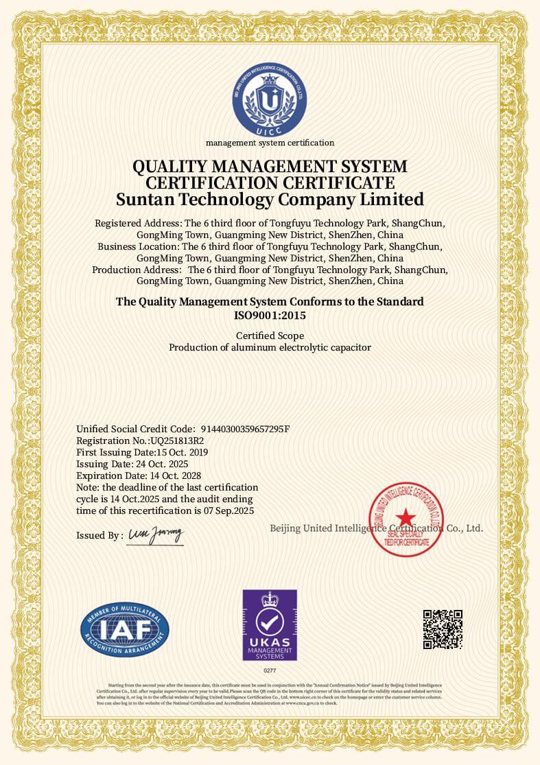 Aluminum Electrolytic Capacitors ISO Certificate