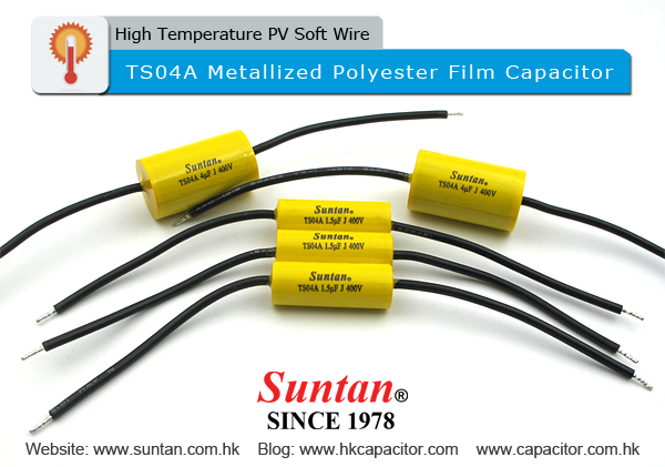The TS04A metallized polyester film capacitor is traditionally supplied with two solid pin leads. To address application requirements involving flexible installation and elevated operating temperature conditions, Suntan introduces a TS04A variant equipped with high temperature PV soft wire leads.